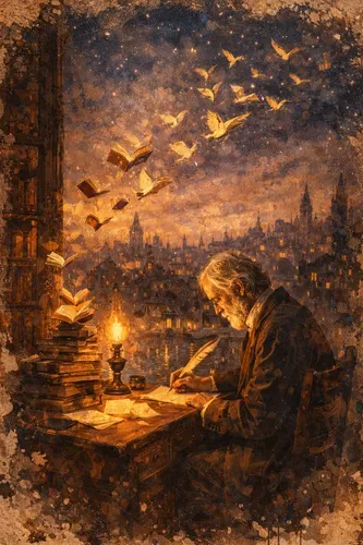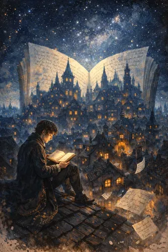 + Free ShippingA surreal literary collage series blending romantic city nights, imaginative characters, and magical books where reality dissolves into poetic storytelling and painterly dreamscapes.